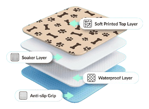 A pheromone-infused layer attracts pets, helping accelerate potty training, while the slip-resistant base ensures the pad stays securely in place even during active use.